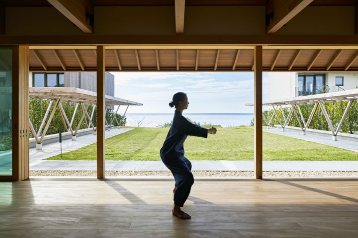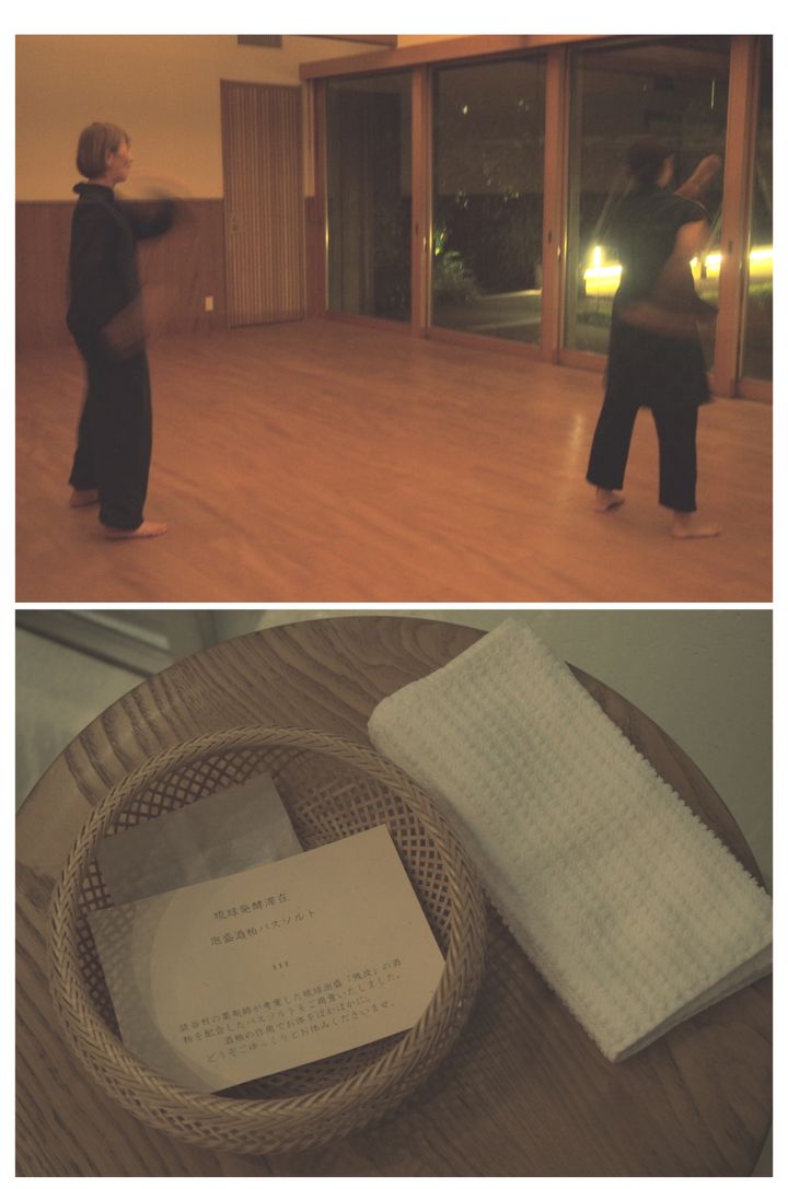 大満足の私たちはそのまま「道場」へ。ここでは、睡眠へと誘う「夜の調律深呼吸」という呼吸法ストレッチを毎晩開催している。体をじっくり伸ばし、呼吸を整えることで、睡眠への準備が整った。