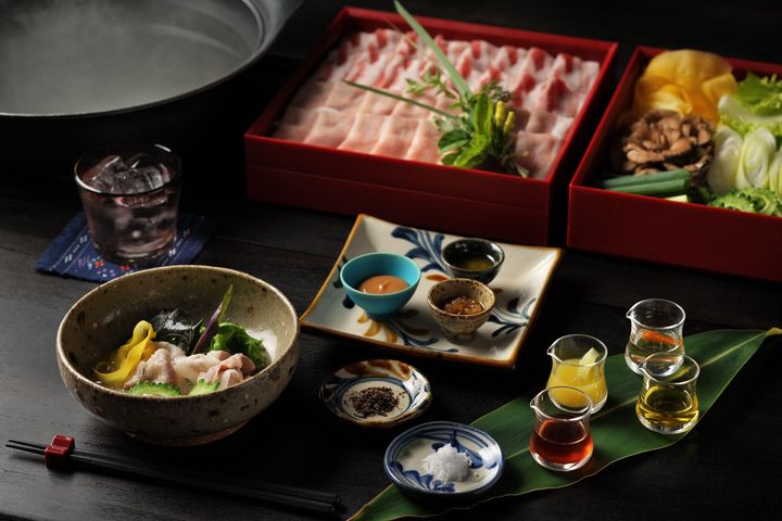 この日の夜ご飯は、部屋で「琉球発酵しゃぶしゃぶ」。豆腐ようと呼ばれる濃厚なソースや、発酵パパイヤを合わせたピュレなど9種類の薬味を、しゃぶしゃぶと合わせて食べる。シメは、沖縄名物ソーキそば。出汁にうま味がじっくり染みていて、スープまで美味しく飲めた。