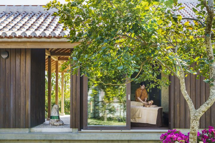 「星のや」での滞在に欠かせないのが、アクティビティ。「星のや沖縄」では、インフィニティプールで行う「アクアティックエクササイズ」や、素足で砂浜を歩く「ウォーク」など、自然を感じながら体をじっくり動かせるプログラムがそろう。心地よい疲れのあとは、「星のや沖縄スパ」で心身ともにリラックス。沖縄の代表的なハーブである月桃を使ったプログラムなど豊富に用意されており、気持ちまでゆるむような90分間だった。