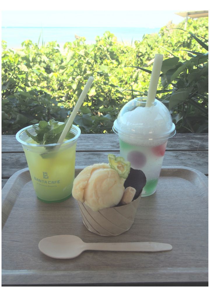 それもそのはず、目の前に広がる海をひとり占めしているかのような開放的な眺めが魅力。沖縄らしいマンゴーやシークヮーサーなどのフルーツジュースをはじめ、黒糖や紅芋のジェラート、ポークたまごおにぎりまで幅広く楽しめる。琉球畳をモチーフにした席もあり、心地よくリラックスできる空間だ。