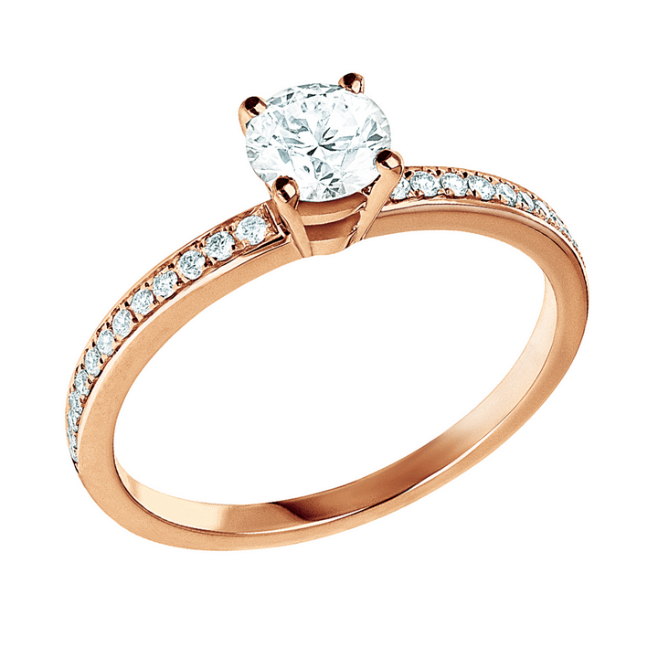 創業の地であるローマの芸術や建築、古代からの歴史にインスピレーションを得た、大胆かつドラマチックなクリエイションで知られるブルガリ。エンゲージメントリングにもブランド独自の美学が息づき、そのデザインはシンメトリーの力強いライン、立体的な構造を特徴としています。また、厳格な基準のもとに選ばれるダイヤモンドは、カラー、カット、クラリティ(透明度)の全てにおいて上位のグレードのみ。愛の証しにふさわしい華やぎと存在感を約束してくれます。