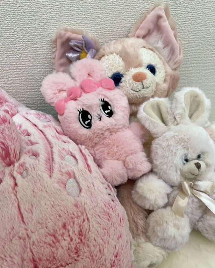 「ベッドの上にお人形を集合させて、いつも癒されています♡ ピンクのコが多いかも」