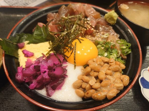 納豆や山芋など、滋養豊かな具材が入っているので、普通の海鮮丼よりもスタミナがついた気がします。少し意外な組み合わせですが、味のバランスも良く、とても美味しかったです。