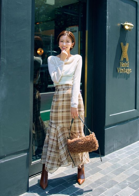 【透け】シアーなチェックを主役に迎えて抜け感も秋っぽさも両得♡
