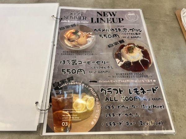 プリンやコーヒーゼリー、アサイーボウルなど、スイーツメニューも充実しています。