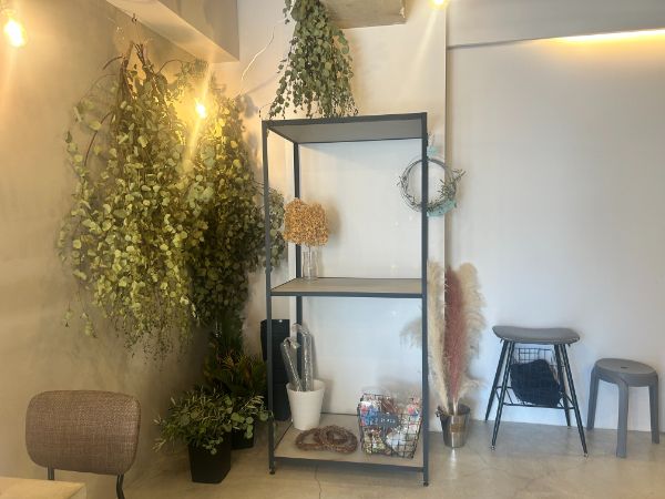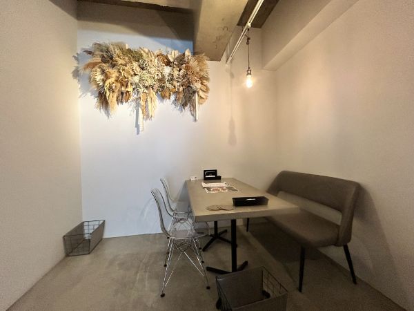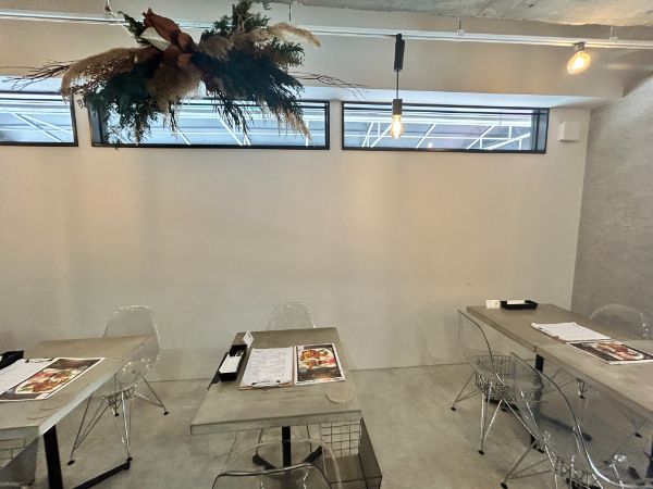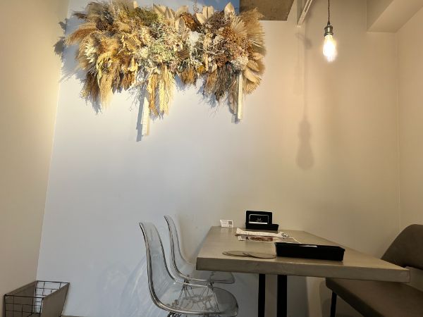店内に入ると、打ちっぱなしのコンクリート壁にドライフラワーが飾られていて 無機質さの中にも心地よい温かみがあります。 ゆったりとしたカフェタイムを楽しみたい人にぴったりの雰囲気です♪