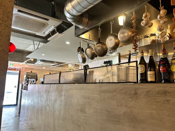 厨房に吊るされたフライパンやニンニクまでもがインテリアの一部のようで、おしゃれで思わずカメラを向けてしまいました!
