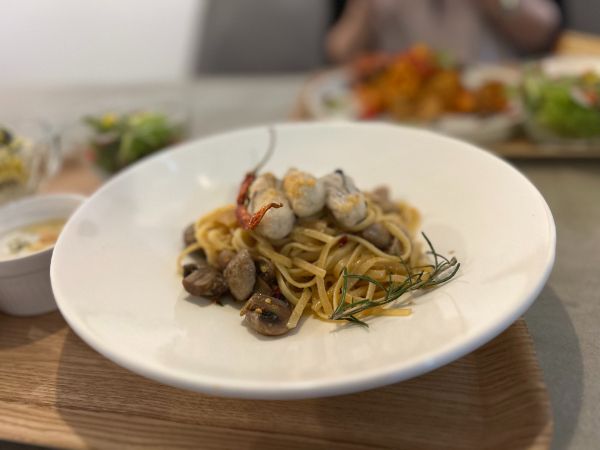 今回は悩みに悩んで、「牡蠣とマッシュルームのペペロンチーノ」を注文しました。 (次回はおとなのお子様ランチを注文したいと思います!)