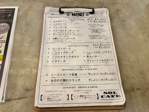 パスタ、ホットサンド、ローストビーフなど、バリエーション豊かなランチセットは、税込1,320円から。