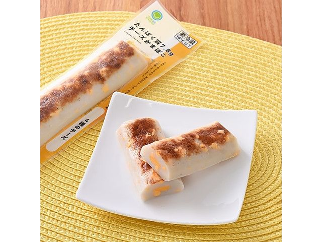 ワンハンドタイプのおつまみかまぼこです。中芯にチーズを入れ、表面にもチーズを練り込んだ仕立てです。