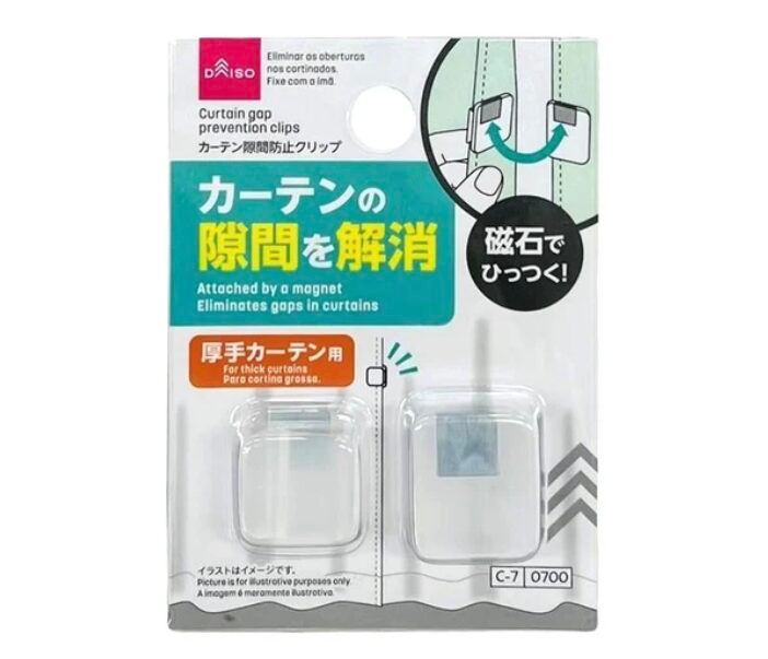 ダイソーでも「カーテン隙間防止クリップ(厚手カーテン用)」が100円(税別)で取り扱われています。