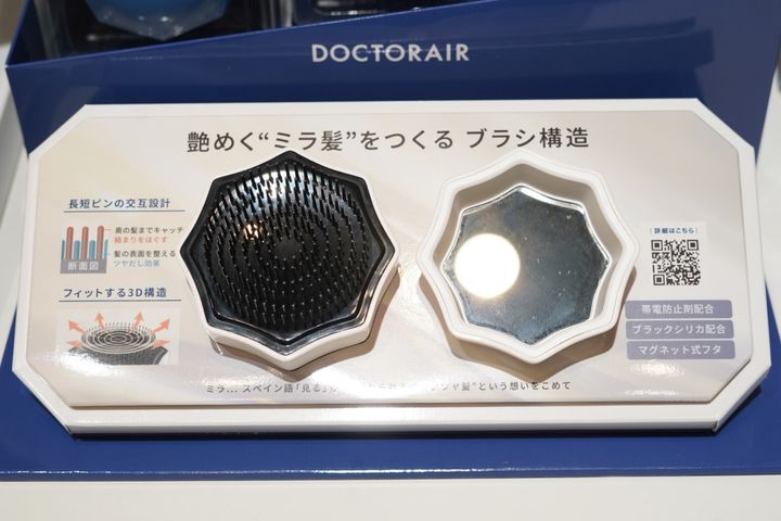「ドクターエア ミラ ブラシ」は、ジュエリーのようなきらめきを髪に宿すヘアブラシ。パサつきやうねりが気になる方、絡まりをなくしたい方に向けて、静電気を抑えるシリカ配合のピンを採用しています。奥の髪までキャッチする長いピンと髪の表面を整えてツヤを出す短いピンの組み合わせにより、数回梳くだけでツヤを出してくれるのだとか!