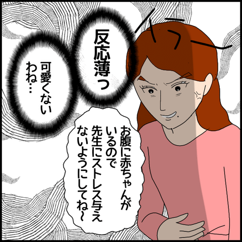 教師陣に結婚と妊娠を報告した岡田。凄まじい勢いに圧倒され、職員はただ呆気に取られるばかり。ところが岡田本人は「みんな驚いてたな~!」と満足げです。