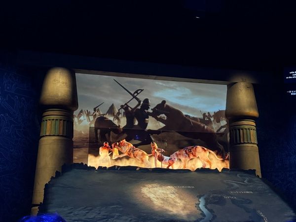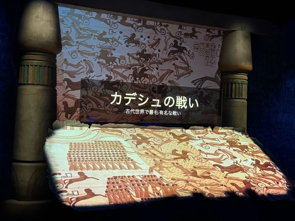特に注目したいのが「カデシュの戦い」。 巨大ジオラマと映像演出が融合し、ラムセス2世とヒッタイト帝国の激突を圧倒的なスケールで体験できます。