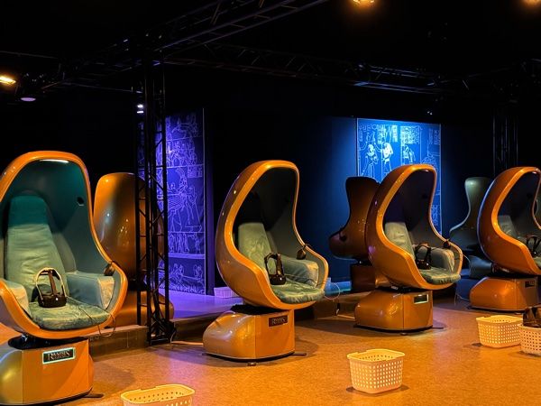モーションチェアに乗って神殿内をふわりと浮かぶように移動する感覚が心地よく、まるで空中を旅しているようでした。ネフェルタリ王妃の案内で進む“来世の旅”は、浮遊感と没入感がクセになる特別な体験です(※VR体験は別料金)。