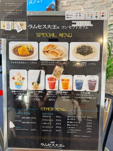 ラムセス大王展の世界観を楽しめるコンセプトカフェも併設されており、展覧会の余韻をゆったりと味わえます。