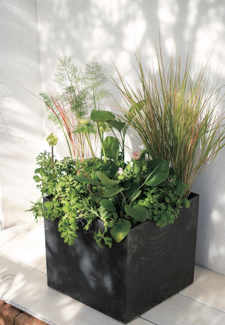 温暖な地域の場合、宿根草の植えつけに適しているのは秋。そこで、直径30cm以上の大鉢に宿根草や常緑樹を植えて、小さな庭のように楽しむ寄せ植えを、英国園芸研究家の吉谷桂子さんに教えていただきました。