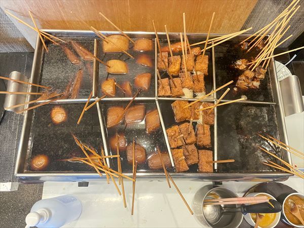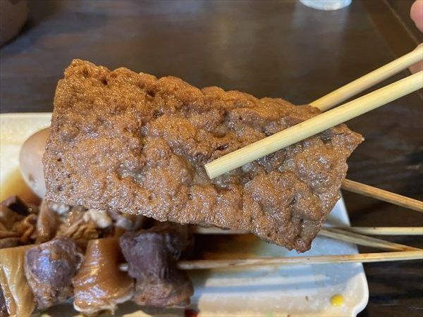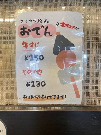 こちらはおでん、なんと厚揚げは店内で揚げているというこだわり。お出汁がしみているのが見て分かります。