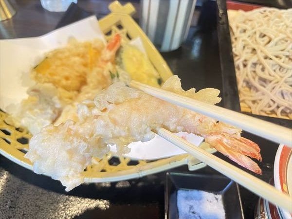 こちら筆者が注文した「天せいろ」(1350円)大盛り(+210円)です。おいしそう!筆者が特に嬉しいのがワサビです。香りがよく強すぎるツーンとした刺さる刺激はありません。本わさびと醤油だけで白米を食べるぐらい、本わさび好きの筆者。このお値段でワサビが本わさびだなんて感動です。