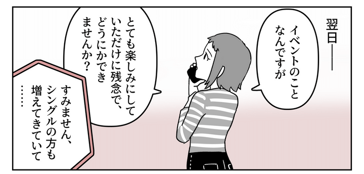 翌日、私は幼稚園に電話をかけて思いを伝えてみることにしました。再度イベントについて聞いてみるも、やはりシングルの家庭に配慮してやめる方針のよう……。