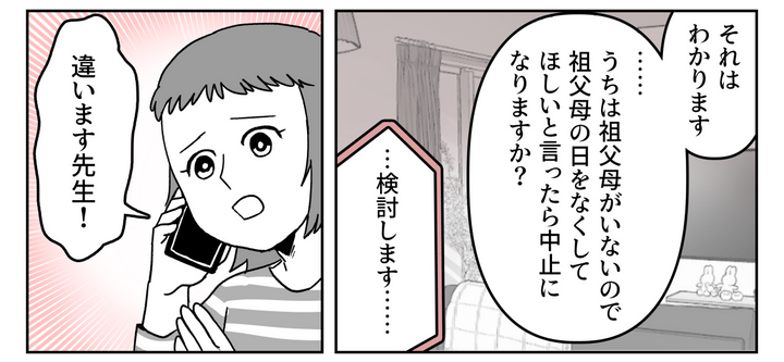 そこで、祖父母の日を引き合いに出してみたところ、そちらもなくしてほしいという声があれば検討するという返事でした。でも……そういうことではないのです。