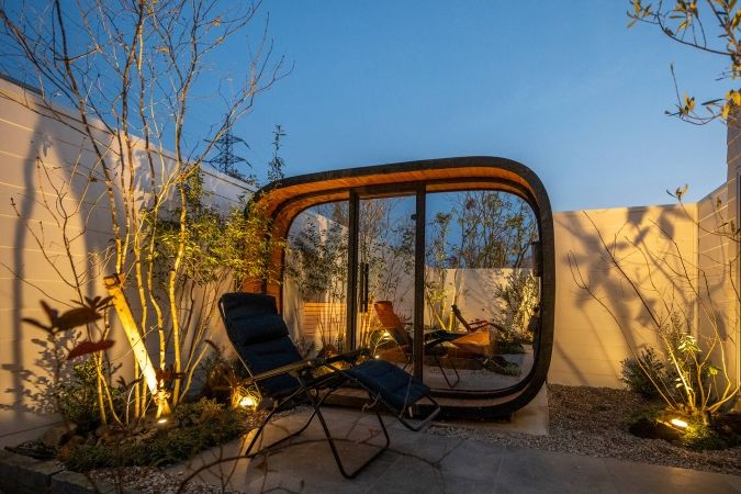 1つは、天然温泉&SAUNA(1室大人2名/90分8,800円~)。全6室あり、そのうち2室は室内サウナに加え、屋外の「ラウンドキューブ」サウナ付きです。