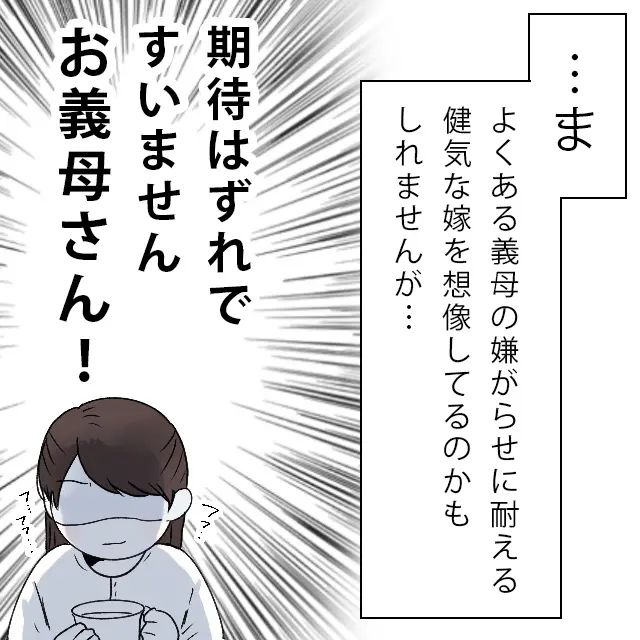 その言葉を聞いて、「・・ま、よくある義母の嫌がらせに耐える健気な嫁を想像してるのかもしれませんが・・期待はずれですみませんお義母さん!」と心の中で叫ぶ私は、