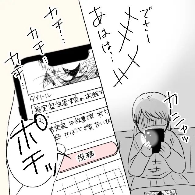 「タイトル:『義実家放置嫁のお絵描き』」と打ち込んで投稿!!