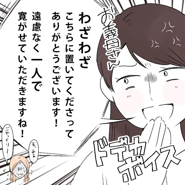 3. ドデカボイスで反撃「わざわざありがとうございます!」チクリと嫌味。私はこれで義母に嫌われました|ママ広場マンガ
