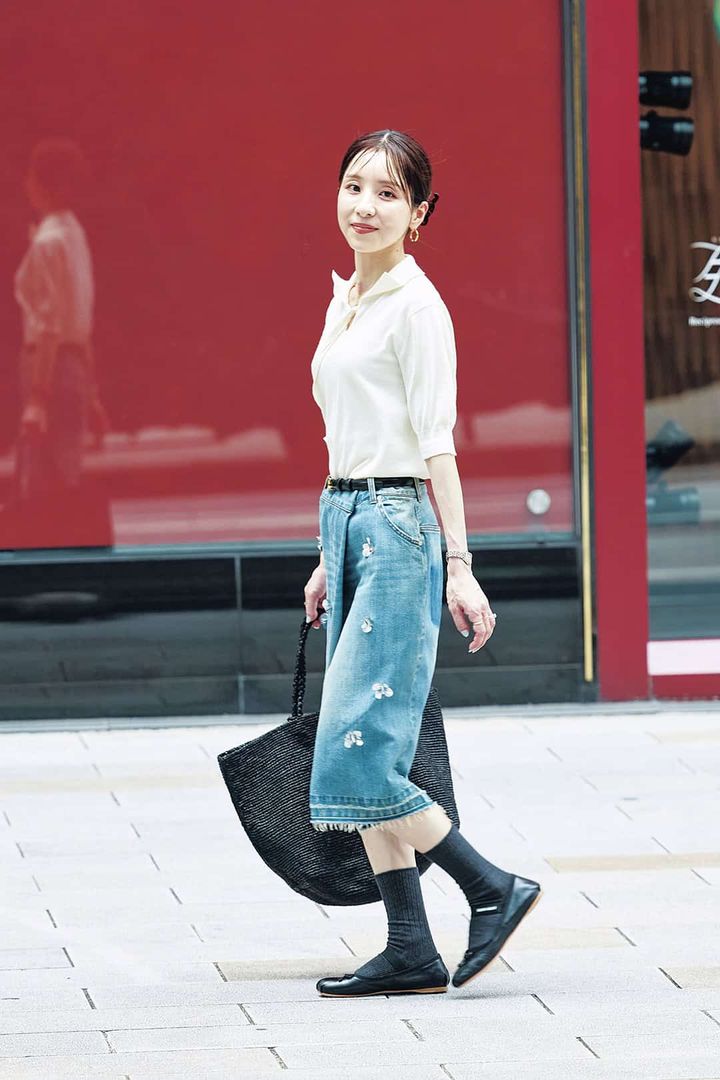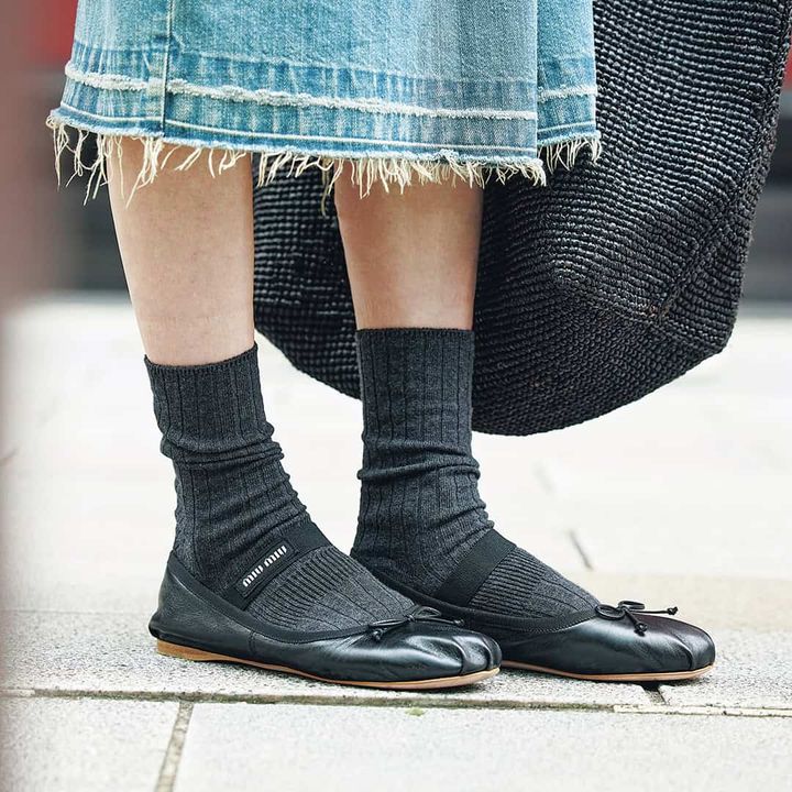 「レザーのメリージェーンミュールはシーンレスで今年っぽく活躍できると確信。カラーソックス合わせのコーデも楽しみたい」