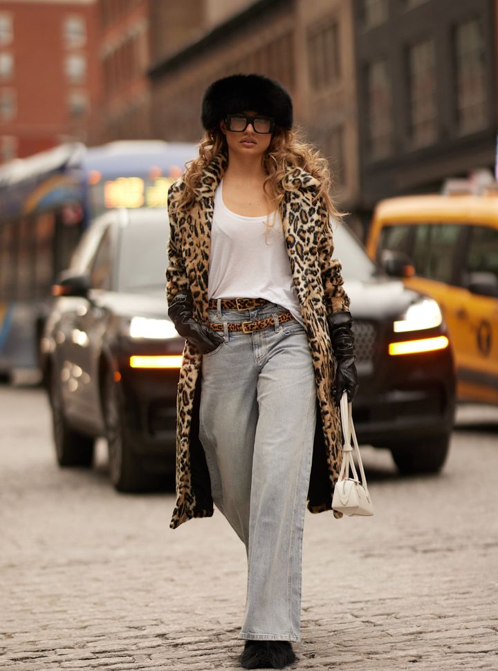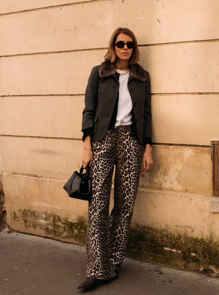 ここ数年に渡るランウェイでのブームを受けて、海外のストリートではレオパード柄が人気に。柄そのものがどうしても派手なので、レオパード柄のアイテムは1つに絞る、さらにそれ以外はカジュアルもしくはベーシックにまとめるのがバランスよく着こなすカギ。