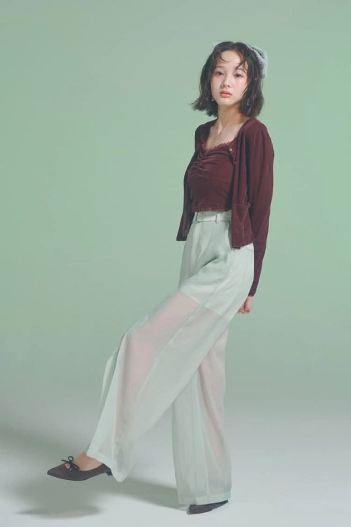 透明感が爆盛れなシアーデザインのミントパンツでオトナ可愛く。