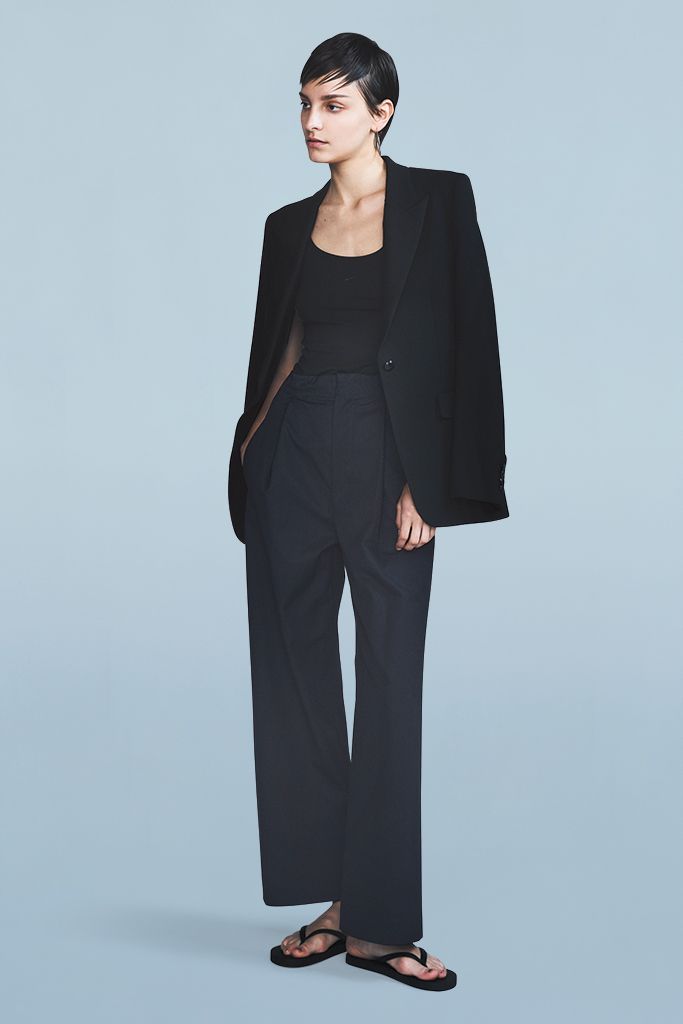 端正なムードが漂うスレンダーな佇まい。その主役は「長い脚」に見せる要素を満たしたボトム。さらにもう1つ「縦長感を強調する」ポイントを含んだボトムをパンツを中心にピックアップ。