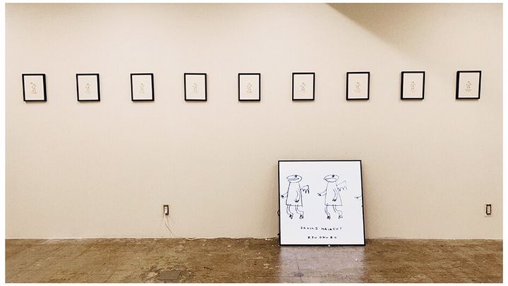 ドローイングを主軸とする個展は彼自身にとって初めての試みであり、楽しくもどこか奇妙な雰囲気をまとう世界が人々の視線を惹きつける。