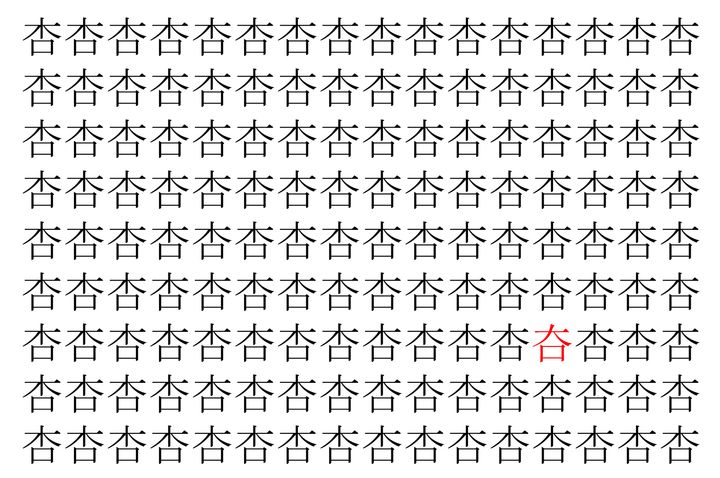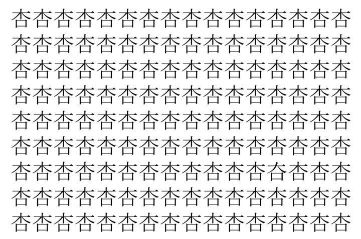 【脳トレ】「杏」の中に紛れて1つ違う文字がある!?あなたは何秒で探し出せるかな??【違う文字を探せ!】