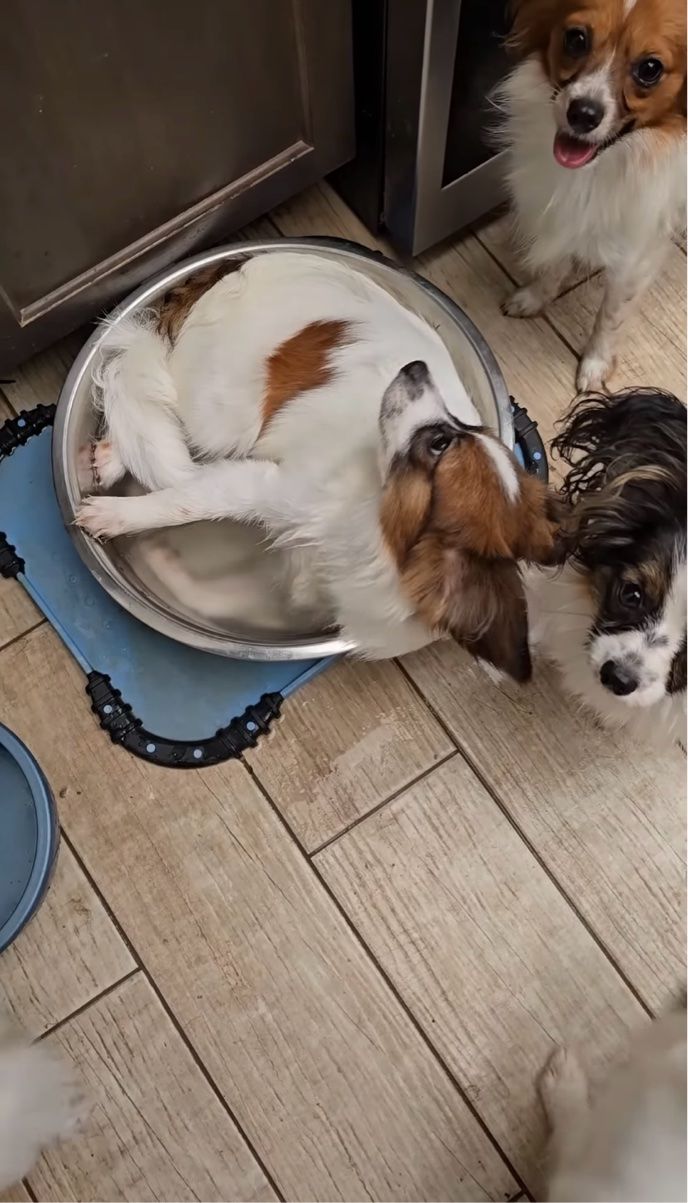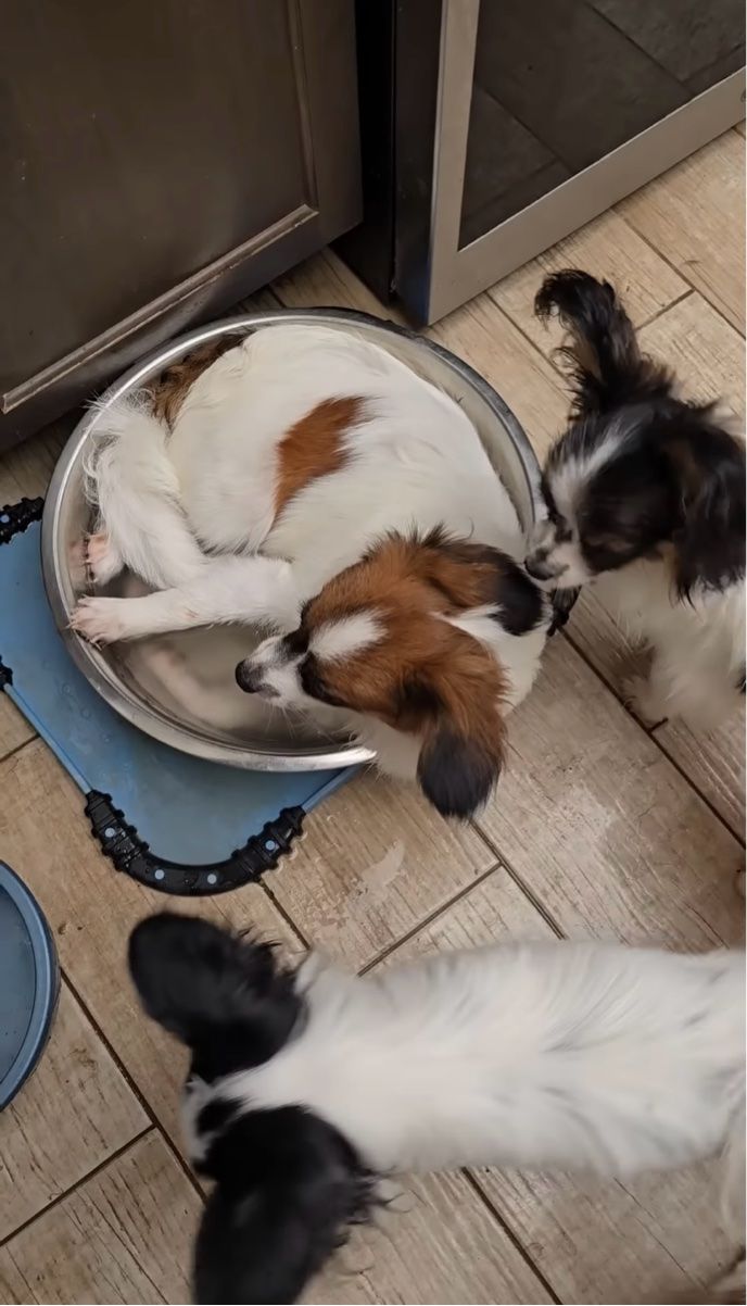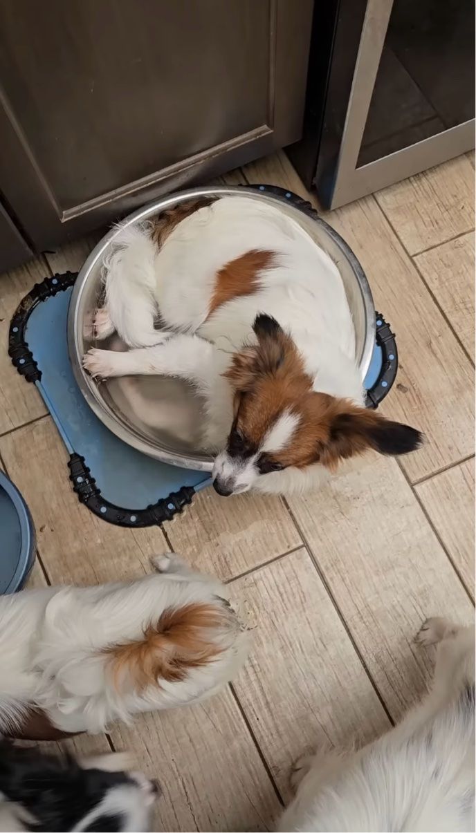 ウォーターボウルに体を丸めてすっぽり入っていたイヌ。 その様子は、こちらの動画からご覧いただけます。
