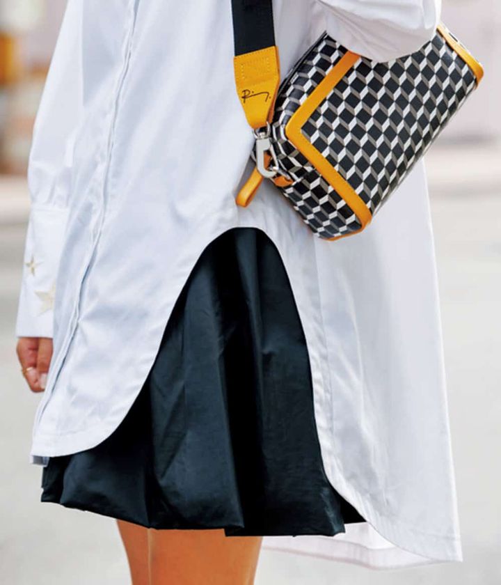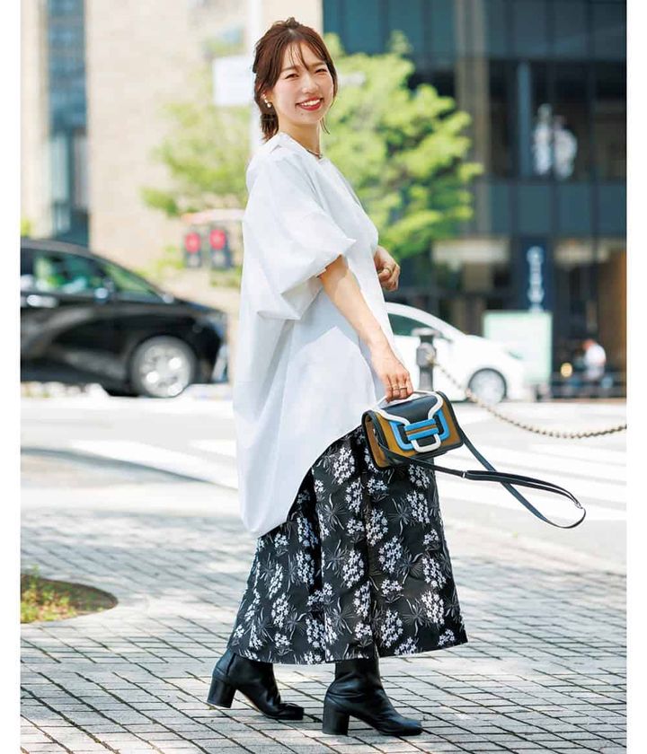白シャツをもっとクリーン・ヘルシーに変える黒スカート〈4選〉