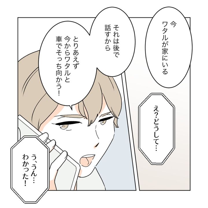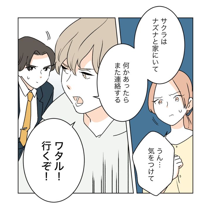 アカネの習い事のお迎えに行ったら、シズクが既に連れ出していたと分かって慌てたカエデからワタルに電話がきました。シズクの居場所を切羽詰まった様子で聞くカエデに、初めはシズクといるなら安心なのではと不思議に思ったワタルでしたが、必死のカエデや顔色が変わったサクラにただならぬ空気を感じたワタルはすぐにシズクに電話しましたが繋がりません。サクラの言葉でGPSを思い出したワタルがチェックすると