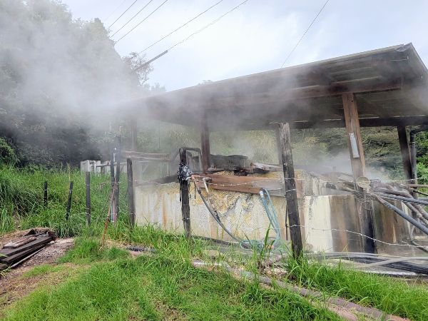 敷地の奥には、温泉の蒸気がゴーゴーと噴き出す泉源があり、迫力満点です!