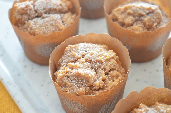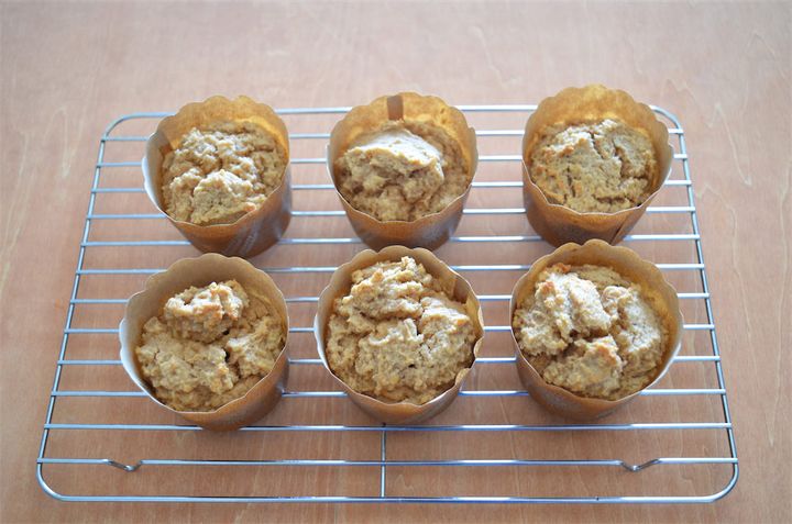 3. マフィンカップに2を半分くらいまで入れ、170℃のオーブンで20分焼く。竹串を刺して生地がつかなければ焼き上がり。