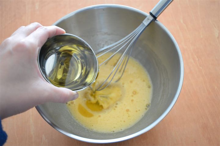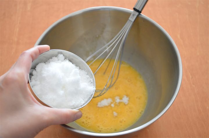 1. ボウルに卵を入れて溶き、砂糖を少しずつ加えてよく混ぜる。