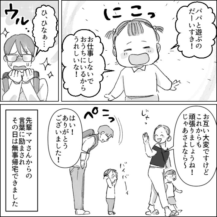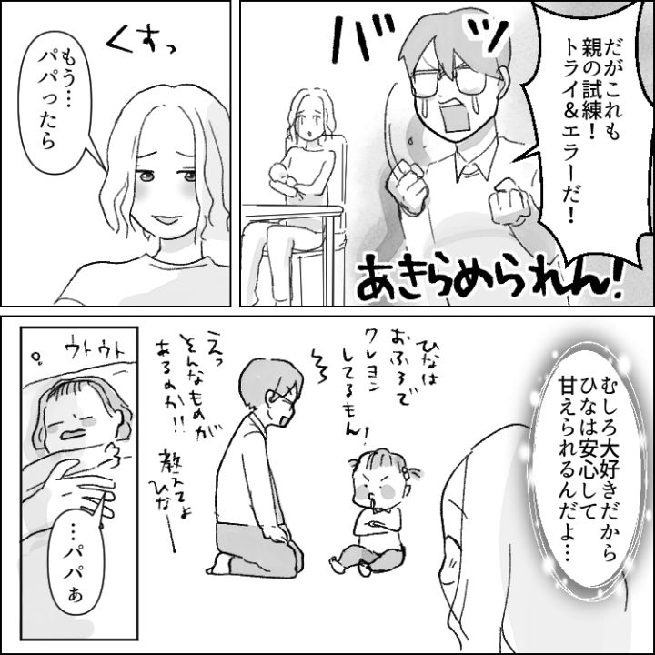 イヤイヤ期の娘に振り回されながら、少しずつ父親として成長している浩平。これからも育児で大変なことがたくさんあると思いますが、夫婦で力を合わせて乗り越えていってくださいね!