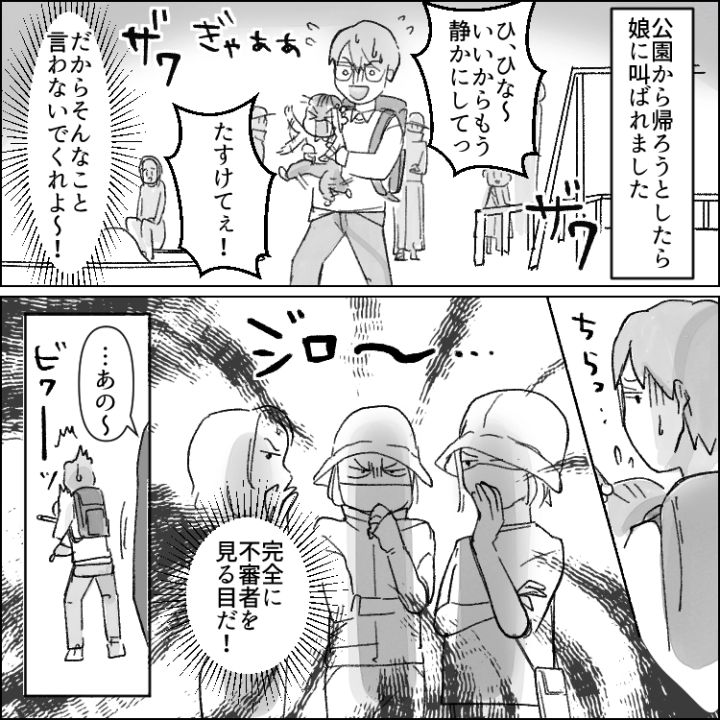 娘を公園に連れて行ったら…「だれか助けてえぇ!連れてかれるうぅ!!」育休パパに絶体絶命のピンチが訪れる!