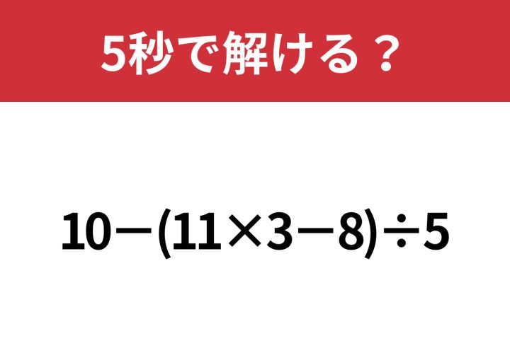 焦らずに解けば正解できるはず!「10−(11×3−8)÷5」5秒で解ける?