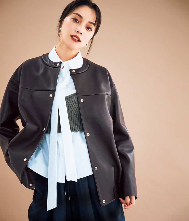◯ エフォートレスに着たいしなやかなレザー&今どきのオーバーサイズ