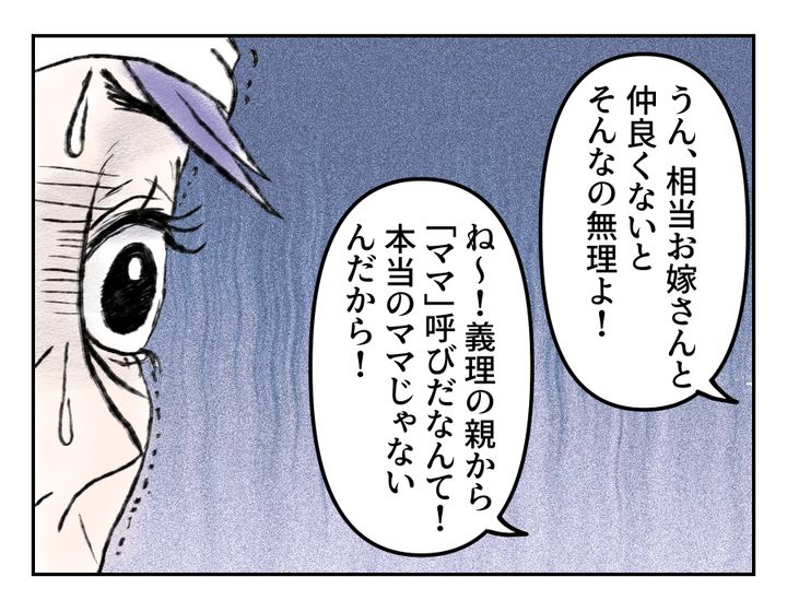 リホさんのお義母さんは徒歩圏内で暮らしています。実家が遠いお嫁さんのリホさんを気遣い、お手伝いができればと思って毎日のように訪問していました。しかし息子のショウヘイさんからは「かえってリホの負担を増やしている」と怒られてしまいます。しかもパート仲間からの指摘で、リホさんのことを「ママ」と呼んでいたことも良くなかったと知って……?