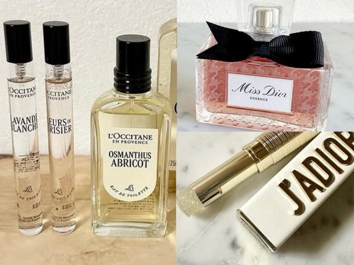 オスマンサスアブリコ オードトワレ 50mL ¥8,470、フルールドスリジエサクラ 10mL ¥3,410、ラヴァンドブランシュ 10mL ¥3,410(ロクシタン)