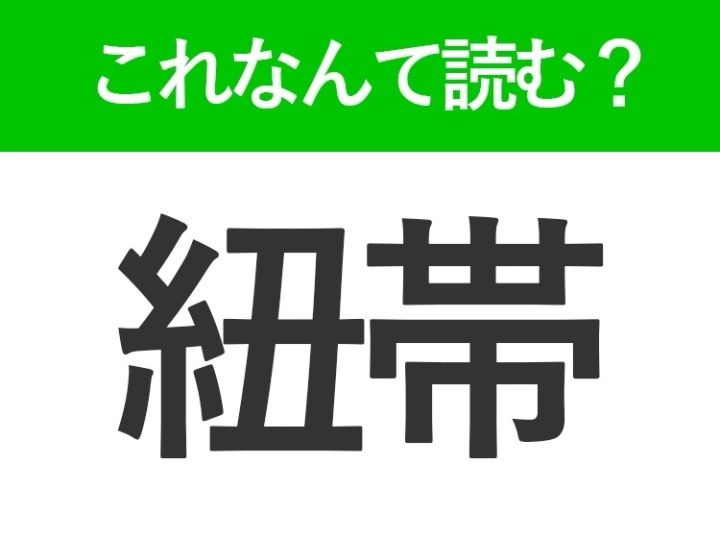 意味は、帯と紐。転じて、帯や紐のように、両者を結びつける大切なもの。また、血縁・地縁・利害関係など社会を形成する結びつきのことも意味します。他にも「じゅうたい」と読むこともできます。普段使う機会が少なくても、いざというときに読めると鼻が高いですよね!みなさんは分かりましたか?家族や友だちにも、「知ってる?」と聞いて自慢してみて!