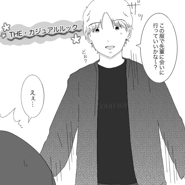 「この服で先輩に会いに行っていいかな~?」とTHEカジュアルルックな出で立ちで平然と言うレンに、「えぇ・・」と言葉を失う私。