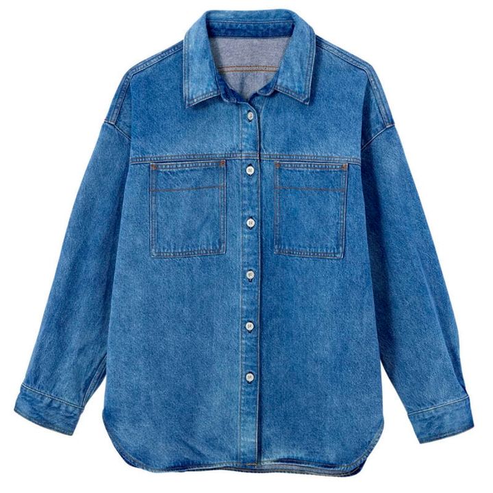 1.体が泳ぐビッグなサイジングとニュアンスたっぷりの色落ちデニムでこなれた佇まいに。デニムシャツ¥18,700(サロン アダム エ ロペ/ジュンカスタマーセンター)